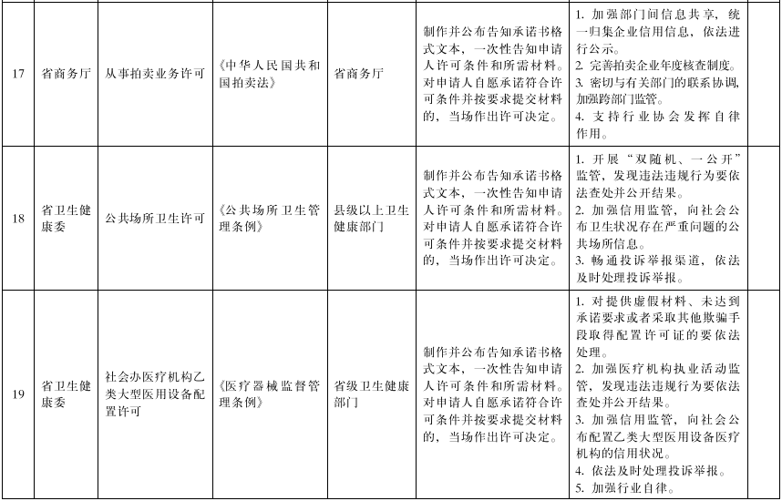 (三)建立健全事中事后監管機制。針對事項特點等分類確定核查辦法,將承諾人的信用狀況作為確定核查辦法的重要因素,明確核查時間、標準、方式以及是否免于核查。對免于核查的事項,綜合運用“雙隨機、一公開”監管、重點監管、“互聯網+監管”、智慧監管等方式,對實行告知承諾制的涉企經營行為實施日常監管,不得對以告知承諾方式取得行政許可的企業采取歧視性監管措施。加強告知承諾信用管理制度建設,建立告知承諾信用信息記錄、歸集、推送工作機制,及時將承諾信用信息全面納入企業信用記錄。依據市場主體信用狀況,實施分級分類監管,區分不同虛假承諾失信情形,依法依規實施失信懲戒,確保過懲相當。根據相關法律規定,做好有關個人信息和商業秘密保護。建立完善信用修復、異議處理機制。(各地區、各相關部門按職責分工負責)